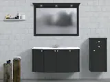 Med genomtänkta och välarbetade detaljer är Valhall vår mest unika möbel. Den tandade krönlisten och pelarna som stilfullt ramar in möbeln. Valhall finns i flera bredder, med luckor eller utdragslådor. Du kan välja mellan vitt mineralkomposit- eller grått granittvättställ samt underlimmat porslinstvättställ i skiva av kompaktlaminat. Valhall går att få med eller utan ben. Alla belysningar i serien är i modern LED-teknik.